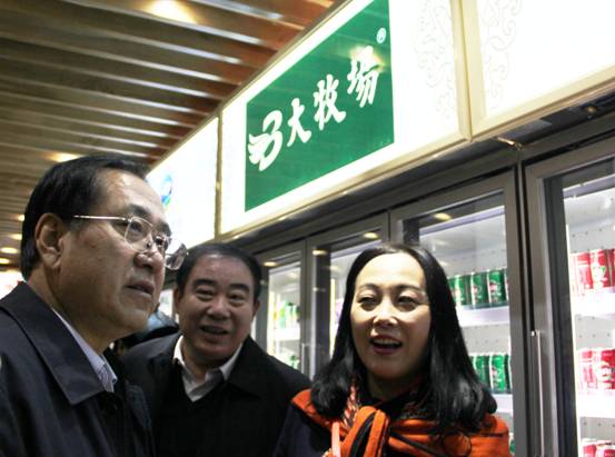 內(nèi)蒙古大牧場牧業(yè)(集團)有限責(zé)任公司副總裁宋寧娜為王玉明副主席一行介紹產(chǎn)品信息