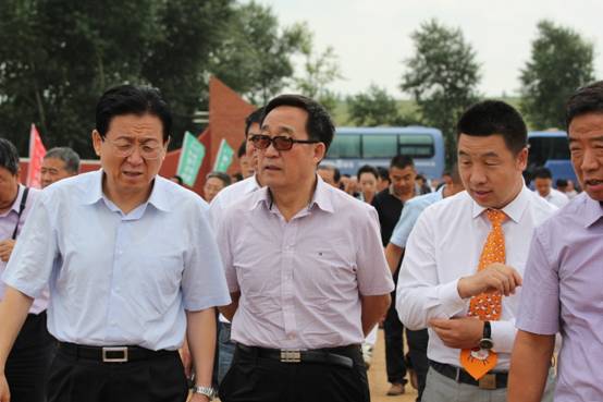 內(nèi)蒙古農(nóng)牧業(yè)廳副廳長(zhǎng)云挨厚(左二)等領(lǐng)導(dǎo)為工廠開(kāi)業(yè)剪彩