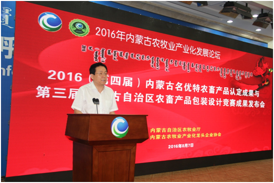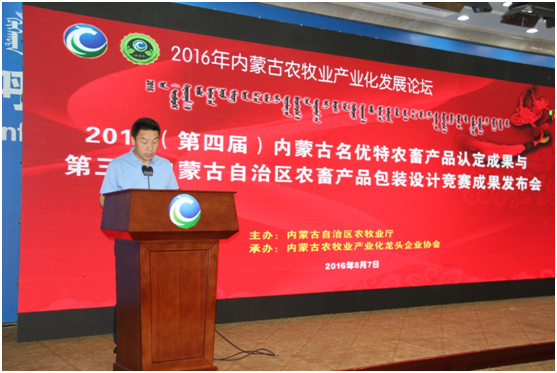 8月7日上午,第四屆內(nèi)蒙古“名優(yōu)特”農(nóng)畜產(chǎn)品認(rèn)定及第三屆內(nèi)蒙古自治區(qū)包裝設(shè)計競賽成果發(fā)布會及內(nèi)蒙古農(nóng)牧業(yè)產(chǎn)業(yè)化論壇在內(nèi)蒙古國際會展中心盛大開幕。內(nèi)蒙古自治區(qū)農(nóng)牧業(yè)廳廳長郭健、副廳長云挨厚、產(chǎn)業(yè)化處處長侯雁冰、辦公室副主任黃偉,中國農(nóng)業(yè)產(chǎn)業(yè)化龍頭企業(yè)協(xié)會綜合部副主任程篤學(xué)、內(nèi)蒙古農(nóng)牧業(yè)產(chǎn)業(yè)化龍頭企業(yè)協(xié)會會長閆樹春,內(nèi)蒙古農(nóng)牧業(yè)產(chǎn)業(yè)化龍頭企業(yè)協(xié)會執(zhí)行會長兼秘書長林永亮,各盟市農(nóng)牧業(yè)局(產(chǎn)業(yè)化辦公室)負(fù)責(zé)人,精品館負(fù)責(zé)人,內(nèi)蒙古農(nóng)牧業(yè)產(chǎn)業(yè)化龍頭企業(yè)負(fù)責(zé)人,各參展企業(yè)負(fù)責(zé)人及包裝名優(yōu)特獲獎企業(yè)負(fù)責(zé)人,協(xié)會辦事處負(fù)責(zé)人、會員單位等200余人出席會議,自治區(qū)農(nóng)牧業(yè)廳產(chǎn)業(yè)化處處長侯雁冰主持會議。本次會議特別邀請到中國農(nóng)業(yè)科學(xué)院農(nóng)產(chǎn)品加工研究所所長、黨委副書記戴小楓做主旨演講。
