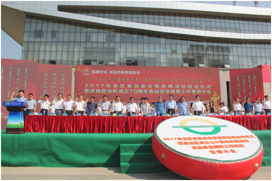 6月30日上午,2017年內(nèi)蒙古食品安全宣傳周活動(dòng)啟動(dòng)儀式暨自治區(qū)成立70周年慶祝活動(dòng)食品安全保障工作動(dòng)員誓師大會(huì)在呼和浩特國(guó)際會(huì)展中心舉行。本屆食品安全宣傳周以“尚德守法 共治共享 食品安全”為主題,通過深入宣傳《中華人民共和國(guó)食品安全法》及相關(guān)配套法律法規(guī),普及食品安全知識(shí),營(yíng)造良好的社會(huì)輿論氛圍,推動(dòng)食品安全工作共治與共享。