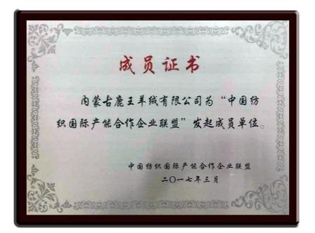 2017“中國紡織國際產(chǎn)能合作企業(yè)聯(lián)盟”發(fā)起成員單位獎牌
