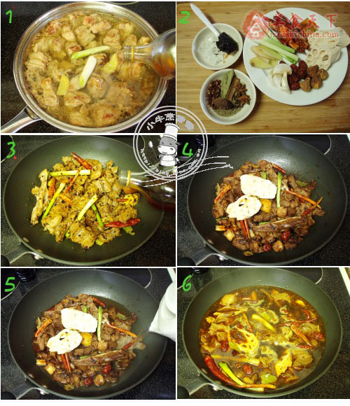 羊肉、料酒、冰糖、老干媽香辣醬、生姜、蔥白、干辣椒、陳皮、蓮藕干、無(wú)花果干、紅棗、大蒜、花椒、香葉、桂皮、八角、草果、小茴香、老抽、蠔油、生抽、鹽。