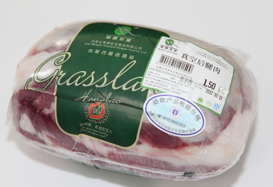 “草原宏寶”牌羊肉系列產(chǎn)品,從牧場養(yǎng)殖、屠宰分割到儲運物流、商品貿(mào)易全產(chǎn)業(yè)鏈、全過程參照國家《良好農(nóng)業(yè)規(guī)范》及相關工廠、物流審核標準的要求實施可追溯控制生產(chǎn),確保安全無污染。所生產(chǎn)的原料全部選用牧場的優(yōu)質(zhì)羔羊,采用伊斯蘭教屠宰方式進行吊宰,經(jīng)冷卻排酸、精細分割修選加工而成,被國家農(nóng)業(yè)部農(nóng)產(chǎn)品質(zhì)量安全中心認證為“無公害食品”。