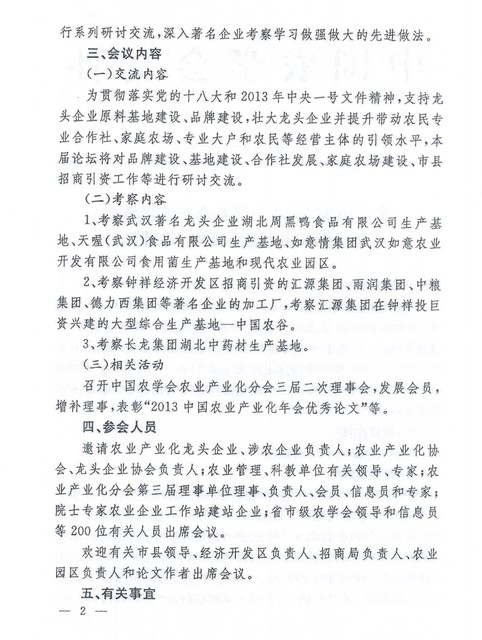 關于召開“2013中國農(nóng)業(yè)產(chǎn)業(yè)化年會暨中國農(nóng)業(yè)企業(yè)家論壇”的通知