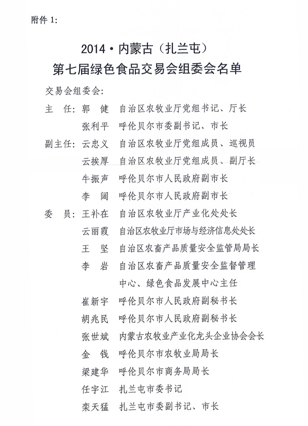 關(guān)于舉辦2014內(nèi)蒙古(扎蘭屯)第七屆綠色食品交易會(huì)的通知