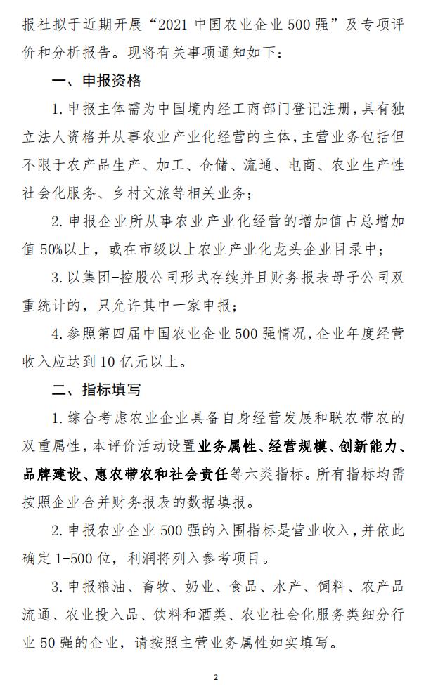 轉發(fā):關于申報2021中國農業(yè)企業(yè)500強的通知