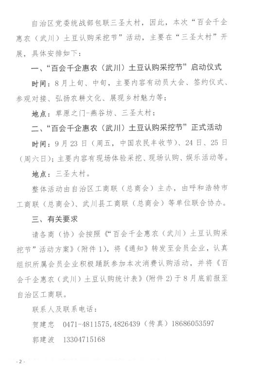 關(guān)于舉辦“百會千企惠農(nóng)(武川)土豆認(rèn)購采挖節(jié)”活動的通知