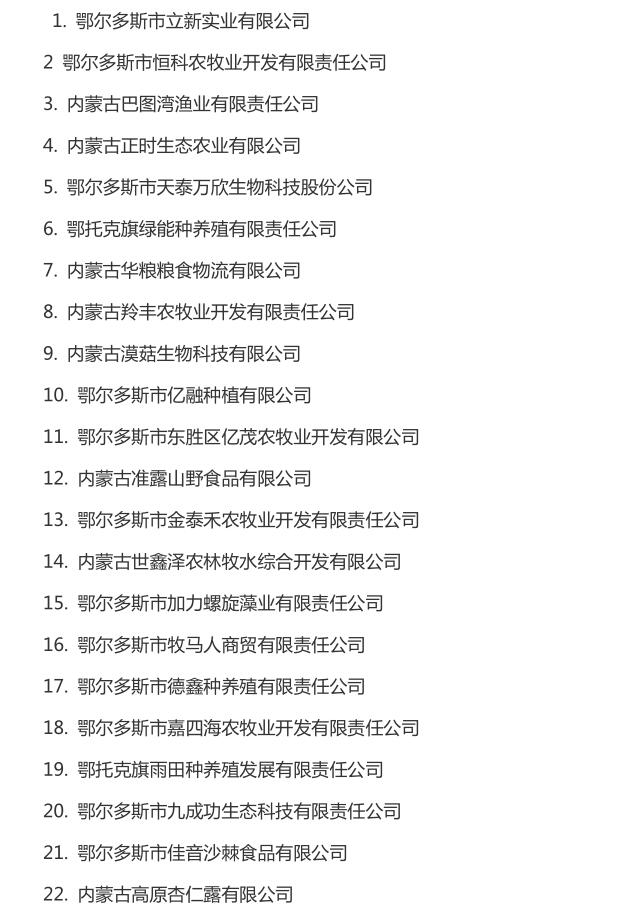 企業(yè)名稱:截止2016年末自治區(qū)級農(nóng)牧業(yè)產(chǎn)業(yè)化 重點龍頭企業(yè)名單​